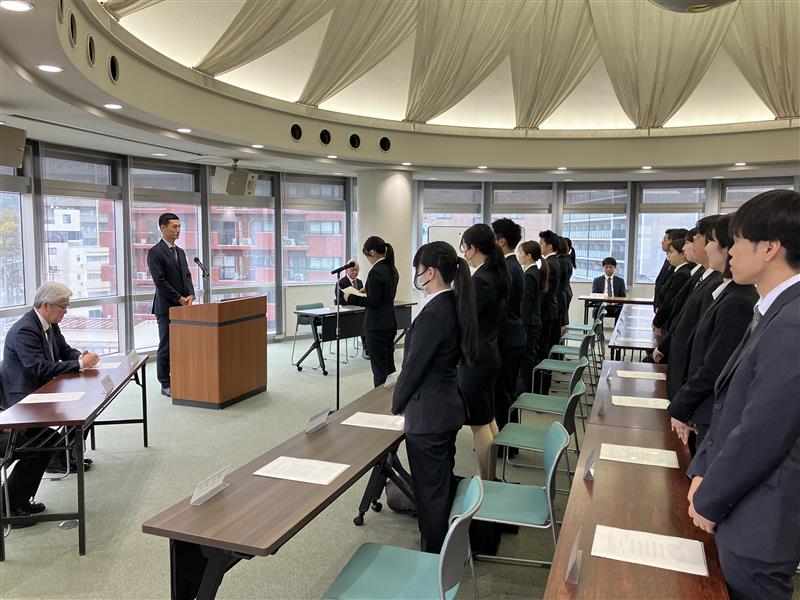 2026年4月1日、大倉山別館にて2026年度入社式を執り行い、新たな仲間を迎えました。新入社員は緊張と期待の中、社会人としての第一歩を踏み出しました。